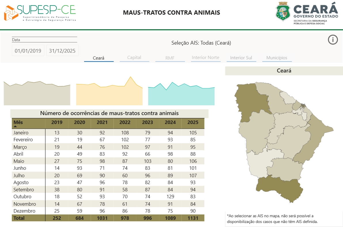 Supesp e Sepa lançam Painel Dinâmico de Proteção Animal com dados de crimes de maus-tratos aos animais no Ceará